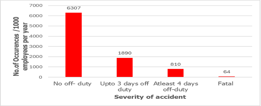 The number of people employed in the construction sector has expanded (Figure 1). Despite this, the sector has experienced an increasing number of accidents. Between 2015 and 2023, there were 9,071 cases of reported injuries of varying severity, 6,307 cases were minor not requiring time off duty, 1,890 required up to 3 days off, 810 required over 4 days off duty and 64 were fatal cases (Figure 2). This is attributed to inadequate knowledge and awareness of health and safety by workers and non-compliance to safety regulations as the key contributing factors to increased accidents in construction sites in Kenya (Institution of Engineers of Kenya – IEK, 2023).