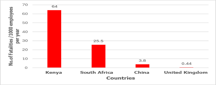 The fatality rate in Kenya’s construction sector is higher compared to other states actively involved in construction activities such as South Africa, which is at 25.5 fatalities, China at 3.8 and United Kingdom 0.44 fatalities per 100,000 employees respectively (Figure